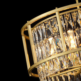 This satin brass framed crystal chandelier is absolutely glamour in its design. It combines multiple high-quality crystals arranged in a circle rectangular design with a sleek satin brass finish. This fitting is sure to provide the wow factor wherever it's installed. Although contemporary in its design, this chandelier would complement both modern and more traditional interiors.